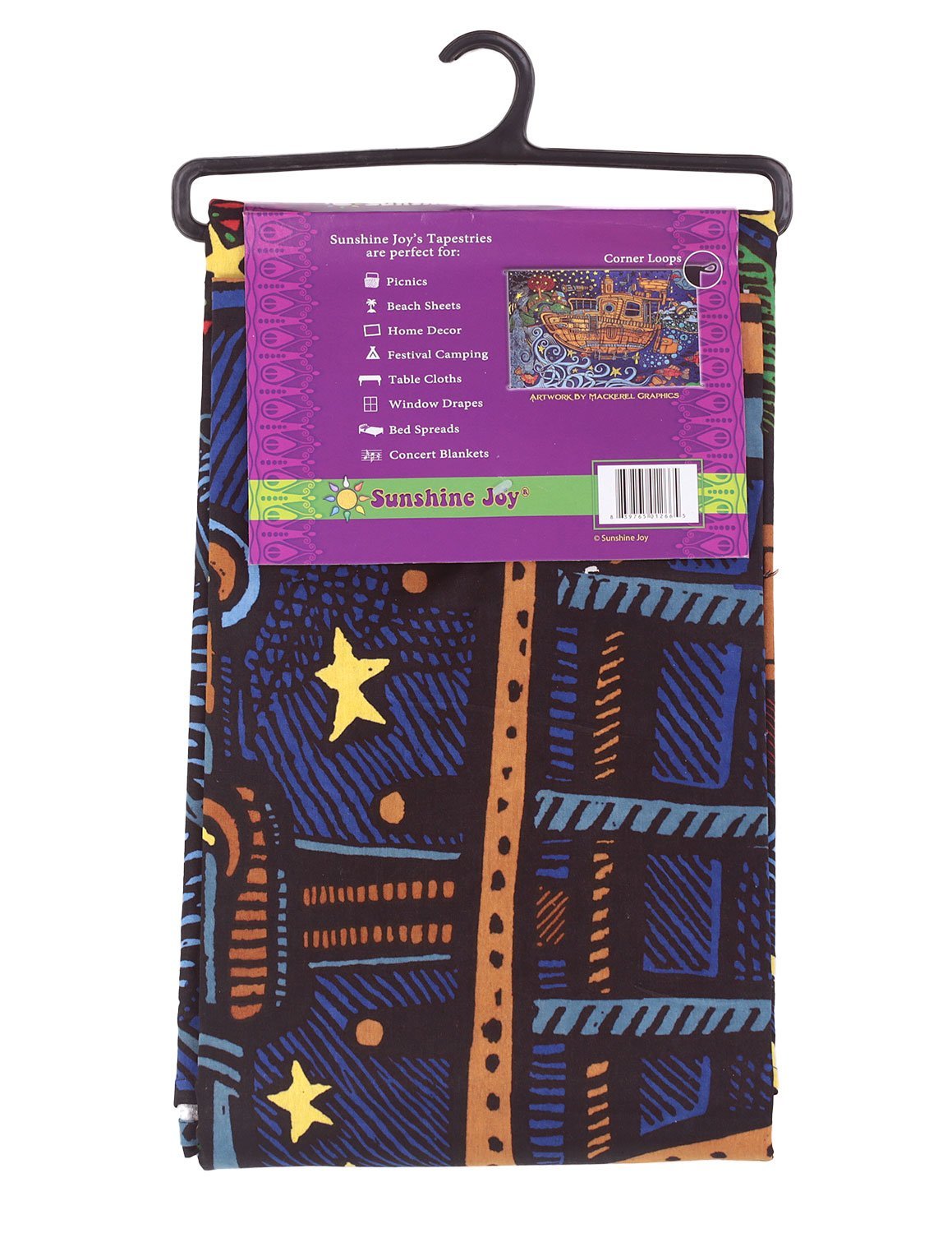3D Steampunk Tugboat Tapestry -- Sunshine Joy’s 3-D Tapestries take beautiful, large-scale art and design into another dimension. You stare at your new Sunshine Joy tapestry intently as it hangs on your wall. You marvel at its intricate and well-crafted design and love the beauty it brings to your environment. The colors and artwork are inspiring. One would never expect anything more from this printed fabric. But then, you break out Sunshine Joy’s 3-D Glasses and WOW. You have gone deep down through the rabbit hole and into another dimension. It appears that you can get your hands behind the colors, and it’s fun watching your friends do just that. -- The designs look beautiful to the naked eye and incredible with our 3-D glasses -- In India, they are what locals use as bedcovers. People use them at home for tablecloths, bed-sheets, room dividers, curtains, window treatments, ceiling decor and to quickly cover up. - The corner loops make our tapestries the perfect multipurpose outdoor traveling companion. Secure your picnic sheet . At festivals, stake out an appropriate amount of space for your friends. Tie up a sunscreen at the campsite. Great at the beach as a windproof beach sheet or sun cover-up. 100% Cotton. Our tapestries are printed, not quilted or woven. They are hippie Indian tapestries. Thin as sheet. Good, tight power loom construction. Hemmed edges. The printing process is unique to India. Each tapestry has its unique imperfections. Sunshine Joy's tapestries are printed with a special soft fiber reactive dye. This is the same soft feeling of your favorite tie-dyed T-shirt. Some colors may show through the back side to give the impression that they are double sided with one side lighter than the other. Actually, they are only printed on one side. -- Size is approximately 5 feet by 7.5 feet. 60 inches by 90 inches 152 centimeters by 228 centimeters 1.52 meters by 2.28 meters. Fits a twin XL college dorm bed.3D Reactive Artwork - Amazing visual effects when viewed with 3D glassesMeasures approximately 60 by 90 inches.Equipped with sturdy corner loops for easy hanging, tying & beach stakingHand crafted in India using traditional methodsMakes a great wall hanging, tablecloth, beach cover up, couch cover or window curtain
