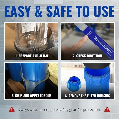 The Superb Wrench heavy duty metal water filter housing wrench replaces the plastic wrench that typically breaks when removing the filter housing unit. Made of heavy duty 7-gauge steel, the Superb Wrench will not break, bend or strip the housing unit. The handle is rubberized and longer than a standard filter wrench which gives you extra leverage, along with the word "loosen" and an arrow imprinted to ensure proper removal of the housing unit. Make filter changing easy, get your Superb Wrench today. 4.8 inch Inside Diameter. Fits Pentek #150295, American Plumber 152037, American Plumber ww34, Culligan HF-150, HF-160, HF-360, HF-365, Culligan #150295-27, Culligan #01019185, US Water Standard 2.5″ X 10″ & 20″, Ametek, Axeon, Dupont WFPF38001C, Everpure 150259 and Omni OB1 series A.Replaces standard plastic SW-2 wrench. 4.8 inch Inside DiameterFits Pentek #150295, American Plumber 152037, American Plumber ww34, Culligan HF-150, HF-160, HF-360, HF-365, Culligan #150295-27, Culligan #01019185, US Water Standard 2.5″ X 10″ & 20″, Ametek, Axeon, Dupont WFPF38001C, Everpure 150259 and Omni OB1 series A.Handle is rubberized and longer than a standard filter wrench which gives you extra leverageHandle is also imprinted with a directional arrow to ensure proper removal of the housing unitMade in the USA
