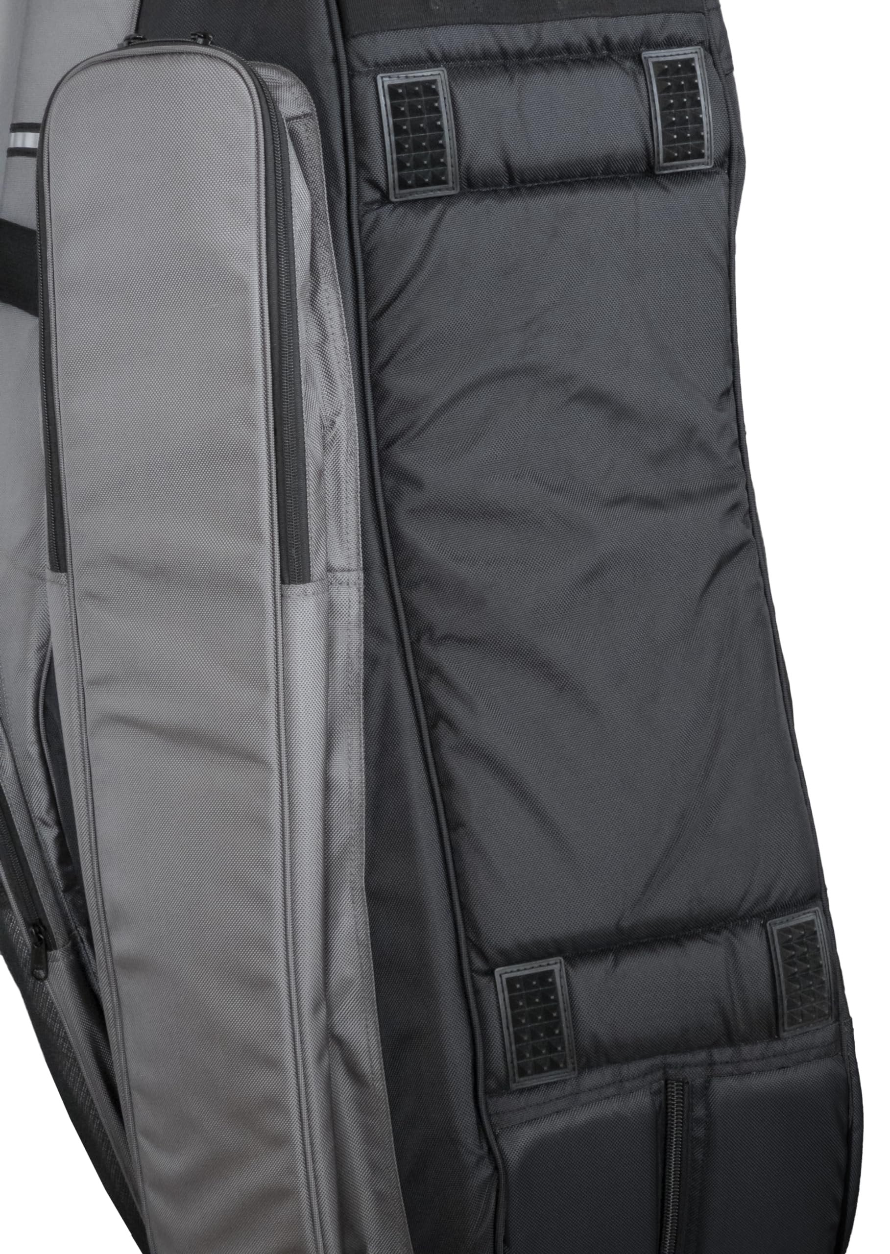- Two Padded zippered bow pockets - Five zippered exterior sockets - Backpack straps with sternum strap and self storage - Back cushion - Shoulder Strap with metal hardware - Robust heavy duty YKK Zippers - Ballistic nylon Exterior,1680 D gauge - 28 mm thick foam padding - All around protective zipper guard - 5 carry handles - 2 neon, reflective strips - 4 rubber side protective feet - 3/4 size3/4 size, Two Padded zippered bow pocketsFive zippered exterior socketsBackpack straps with sternum strap and self storageBack cushionShoulder Strap with metal hardware