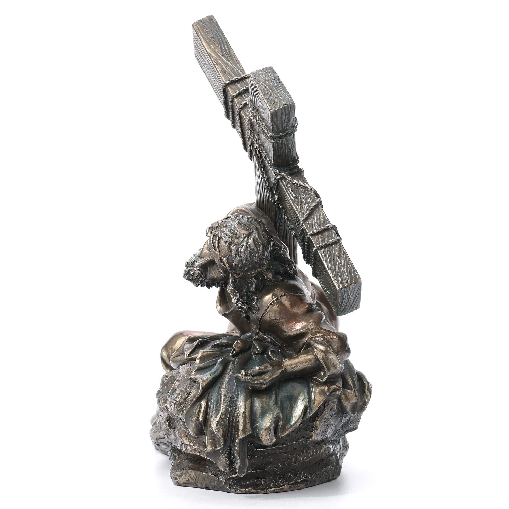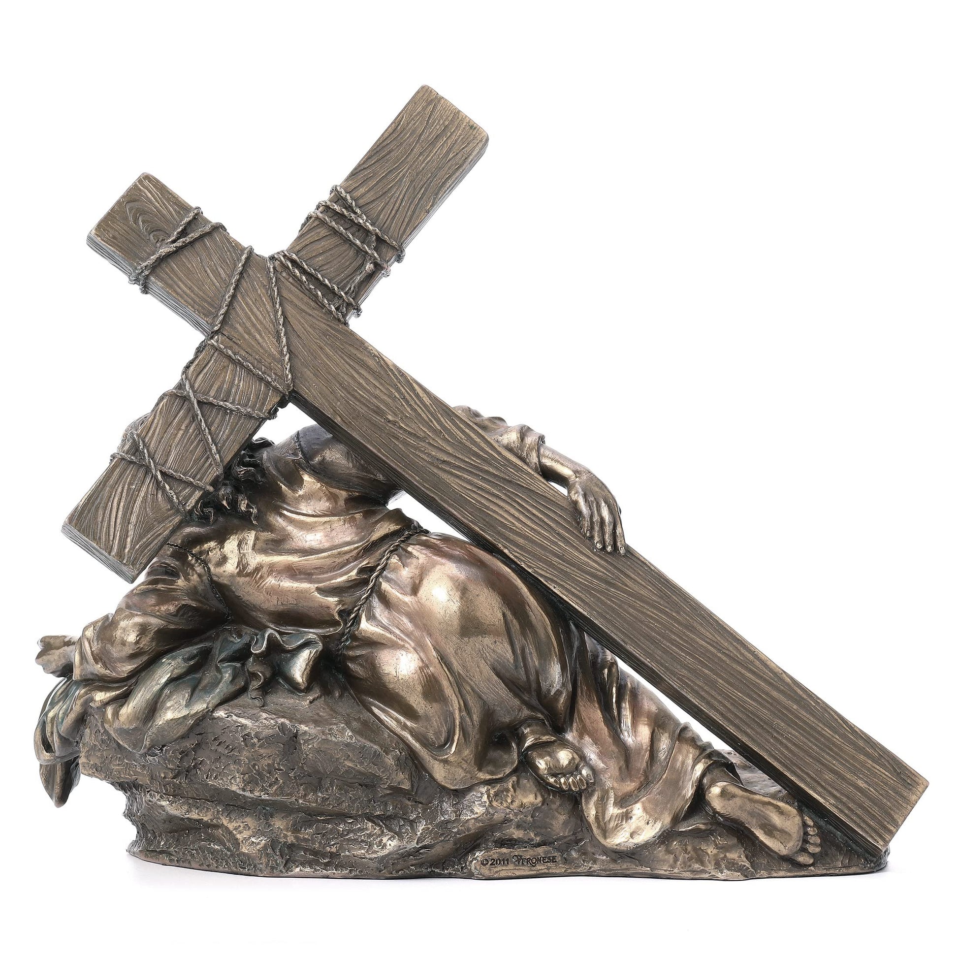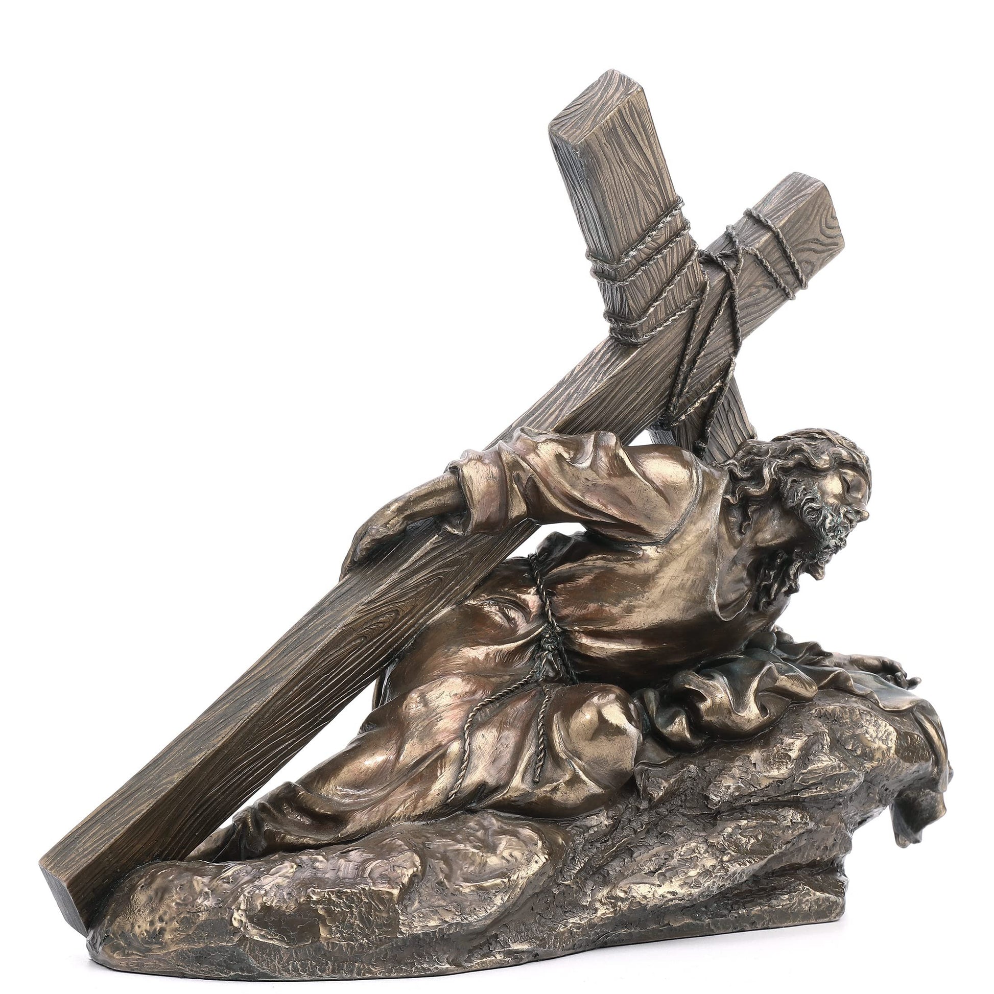 US 10 Inch Jesus Carrying The Cross Cold Cast Bronze Sculpture Figurine