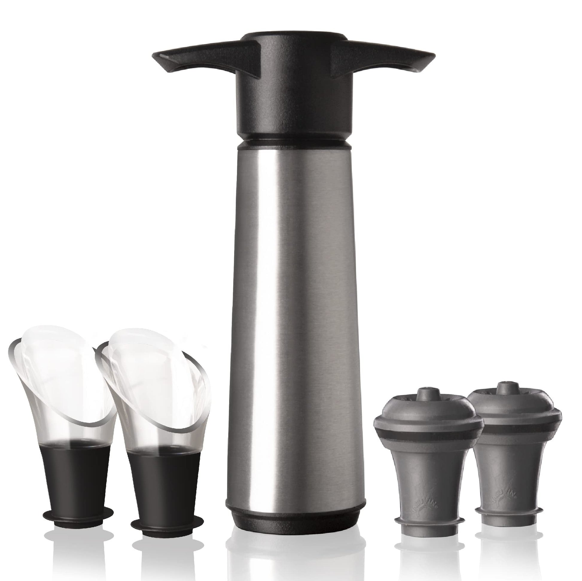 Vacu Vin Stainless Steel Wine Saver Pump with 2 Vacuum Stoppers & Gift Box - Airtight, Leakproof, and Reusable to Preserve Wine Freshness for Up to 10 Days - Easy to Use Perfect for Every OccasionPRESERVES WINE UNDER VACUUM - Slow down the oxidation process of your wine. With the Wine Saver, you can savor every drop of your favorite wines, knowing they'll stay fresh and full of flavorAUDIBLE "CLICK" SOUND - The patented "click" sound ensures a proper seal and efficient preservation. Once you've achieved the optimum vacuum level, the Wine Saver emits a satisfying "Click" soundLUXURY GIFT BOX - Present the Wine Saver in an elegant gift box, making it a perfect gift for wine enthusiasts. This luxury packaging makes the Wine Saver an ideal present for any occasionUNIVERSAL WINE STOPPERS - The Wine Saver includes reusable rubber stoppers that fit most wine bottles, keeping your wine fresh and ready to enjoy. These versatile stoppers provide an airtight sealHELPS REDUCE WASTE - By extending the life of your wine, the Wine Saver helps reduce waste. You no longer have to pour out leftover wine or let it go to waste
