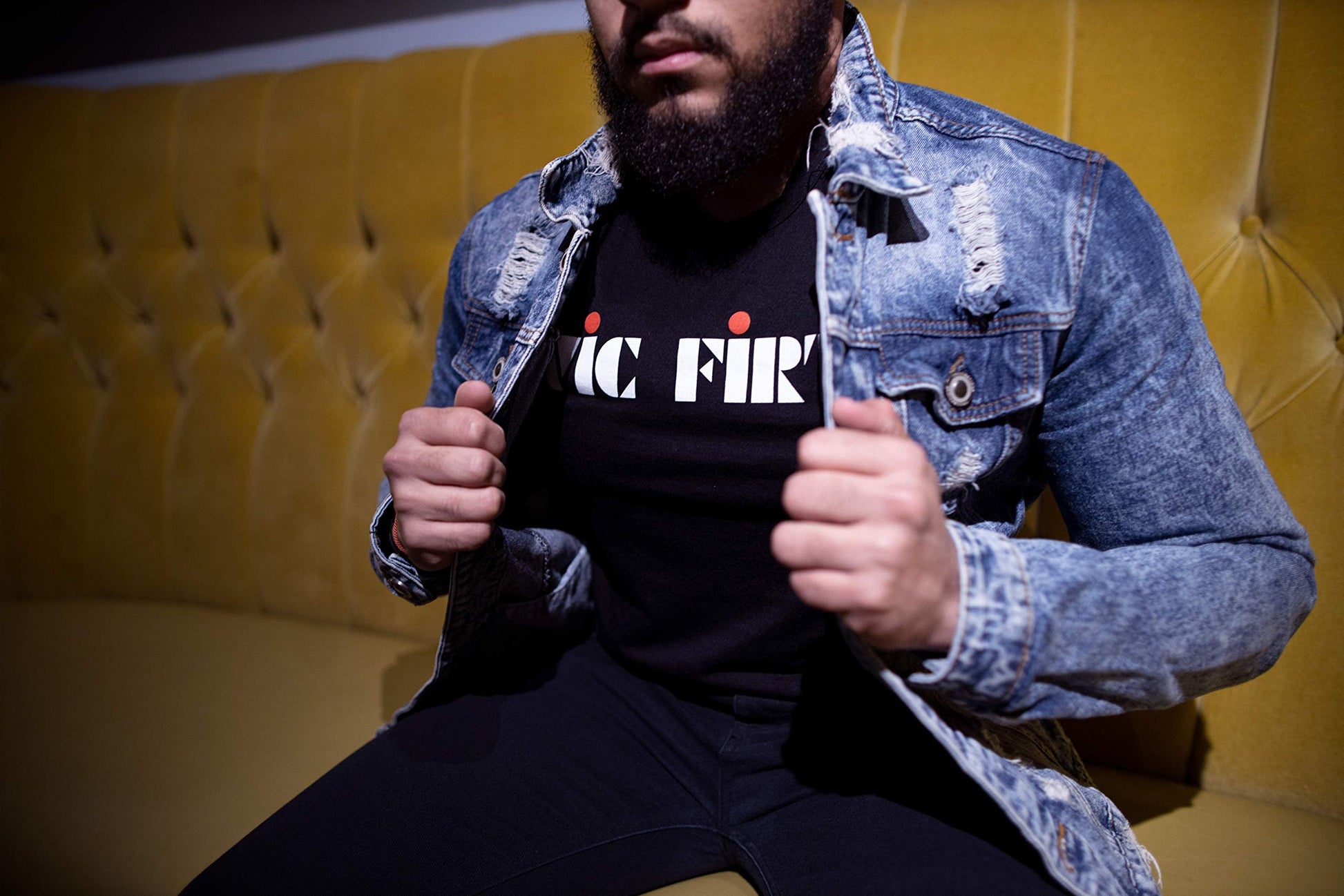 Vic Firth Logo T-Shirt, Black, MediumSuper soft tri-blend fabric (cotton/polyester/rayon)Woven loop VF tag on bottom hemClassic logo t-shirt with The Perfect Pair back graphicRelaxed fit, runs true to size