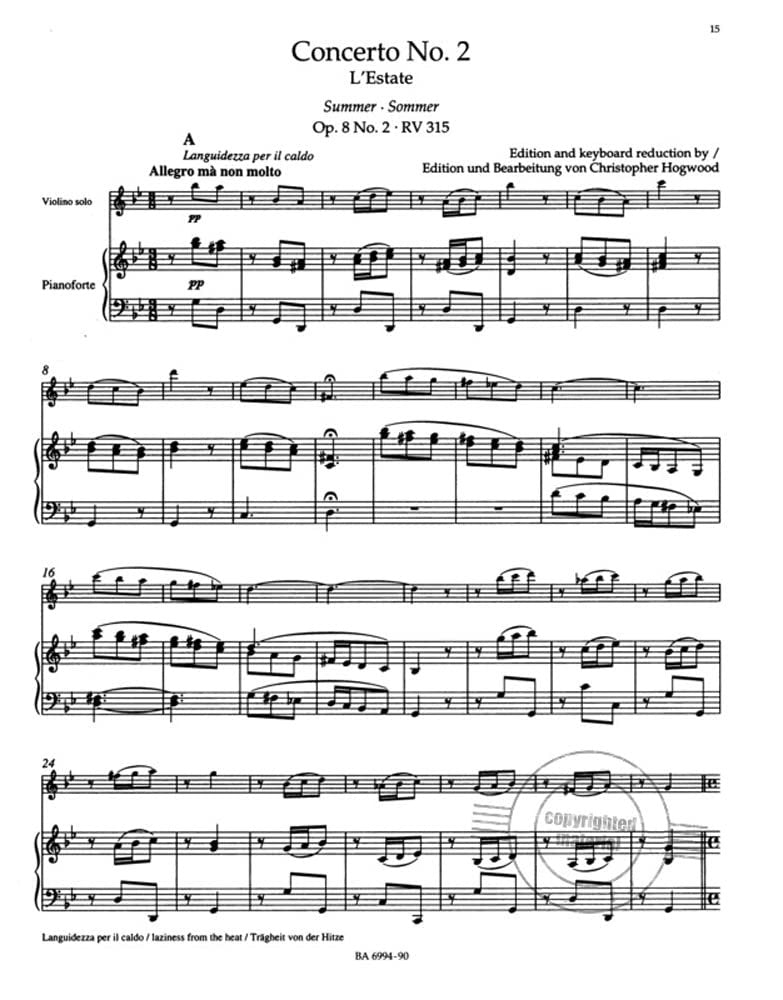 Vivaldi, Antonio - Four Seasons ( Complete ) For Violin and Piano. URTEXT. Barenreiter