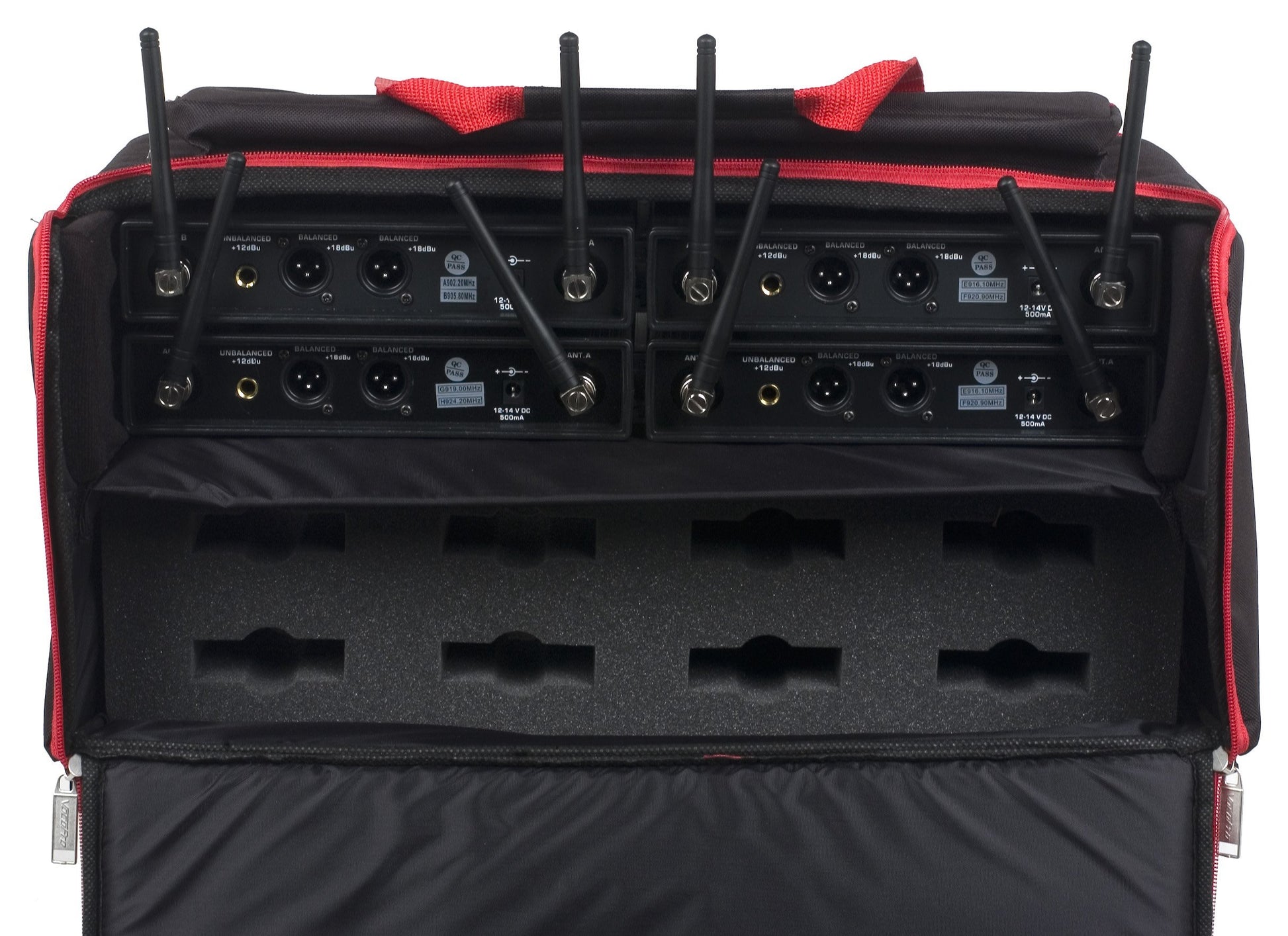 VOCOPRO UDH-CHOIR-8-MIB Eight Channel Wireless Handheld Microphone System In A BagIndustry’s First Self-Contained 8 Channel Wireless Microphone System Receivers and Accessories Installed In Road Ready Gig BagOperates in the 900 MHz Band, which is free of TV Station Interference All-in-one wireless Mic-On-Chip has a pre-amp, compressor, and expander onboardUses proven analog UHF transmission technology for better range and reliability Plug and Play design requires no microphone syncing set-upAll-in-one wireless Mic-On-Chip has a pre-amp, compressor, and expander onboard