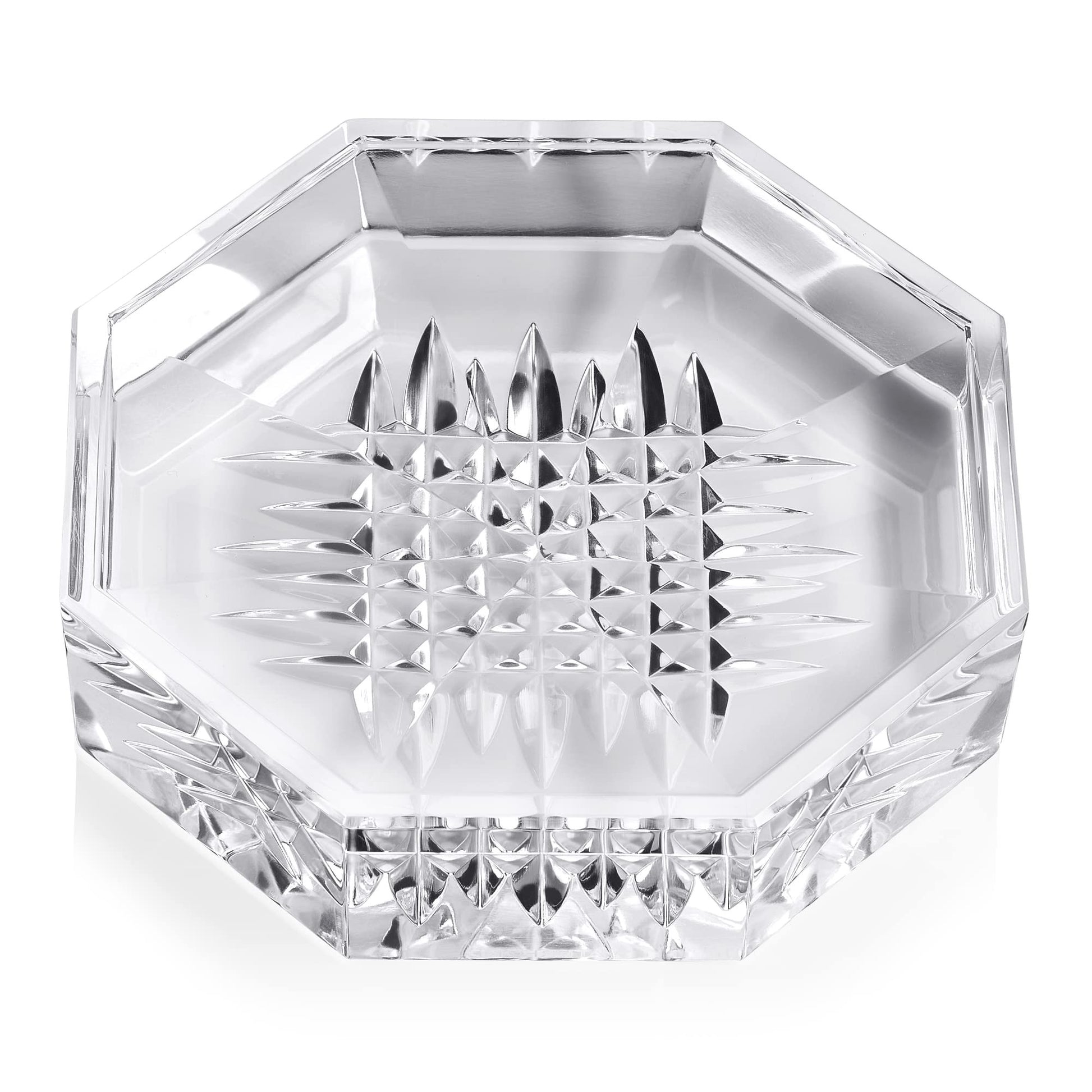 The Lismore Diamond pattern is a strikingly modern, characterized by intricate diamond cuts rendered in radiant fine crystal