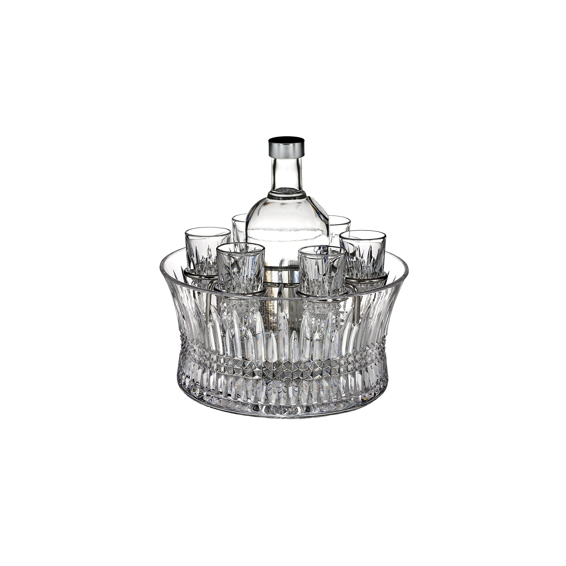 Crystal Chiller includes a metal insert and 6 shot glasses. A stunning addition to any bar collection.