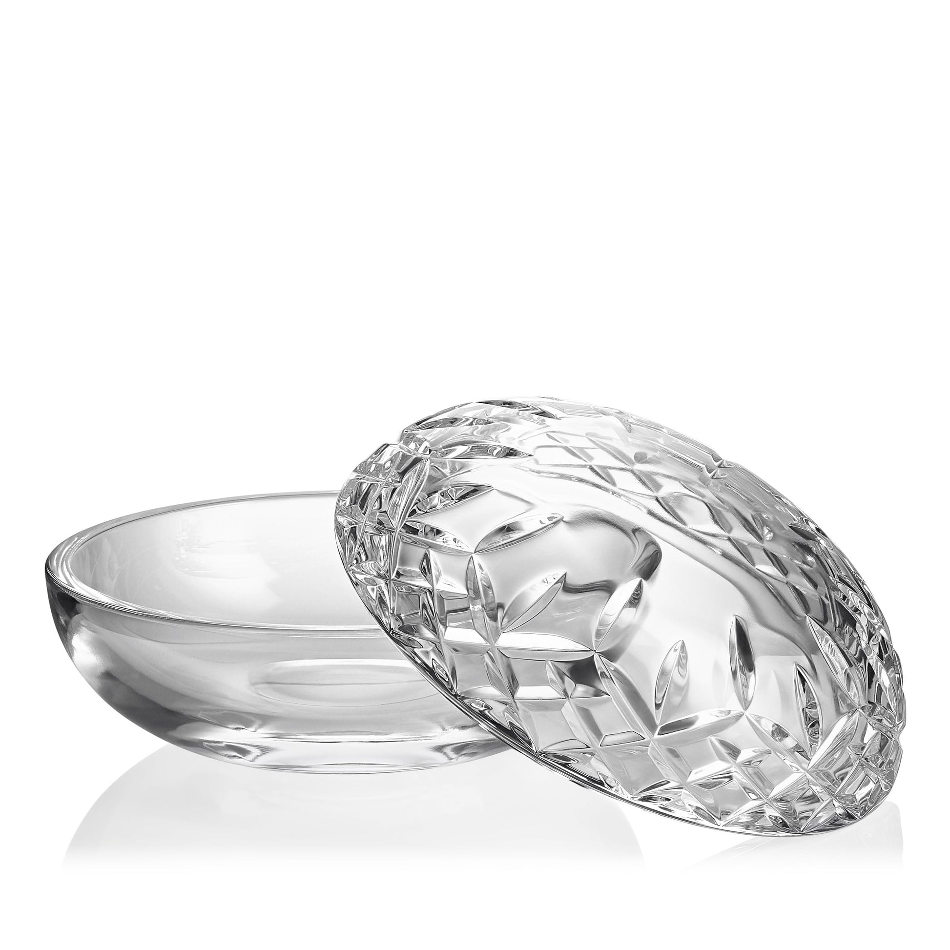 Waterford Lismore Essence Covered Box 5inCrafted from the finest CrystalPart of the Lismore Essence Collection by Waterford. The Lismore Essence collection is a modern evolution of the classic Lismore pattern, representing a more relaxed approach to home décor and home entertainment. Classic form and contemporary function, the Lismore Essence collection retains the iconic Lismore pattern while incorporating modern, slender profiles of luxury crystal glasswarePerfect for holding candy or storing trinkets, the intricate detailing of Lismore's signature diamond and wedge cuts produce a stunning example of modern decor that turns even an everyday occasion into a celebrationTo clean, wash separately in warm soapy water, rinse thoroughly & dry with a lint free clothBeautifully presented in classic Waterford packaging