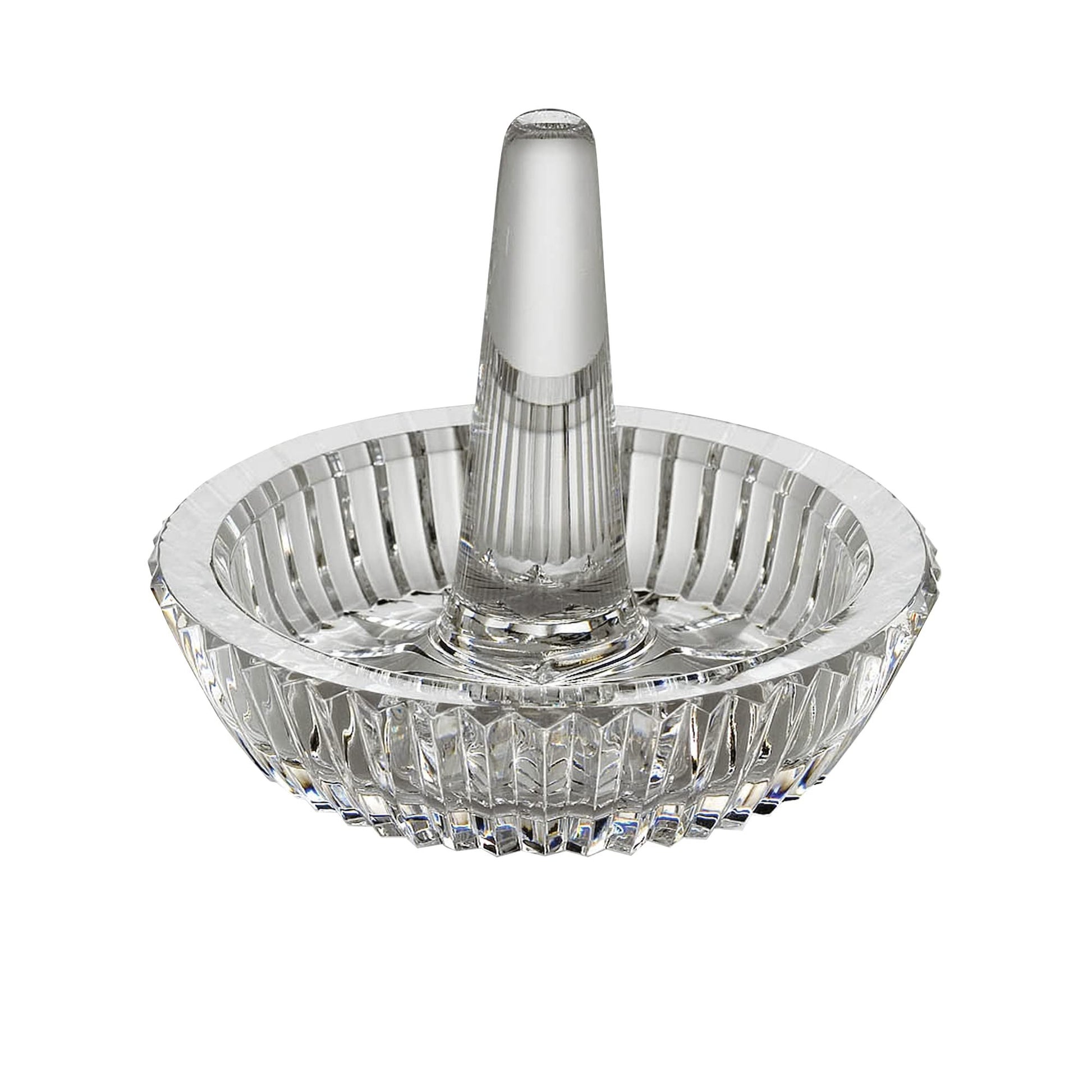 Waterford Round Ring HolderTimeless crystal ring holder by Waterford2.5" tall, 3" diameterCrafted of lead crystal - hand wash onlyExcellent gift for weddings, engagements, anniversaries and Valentine's DaySpike for holding rings and round tray for earrings or other jewelery
