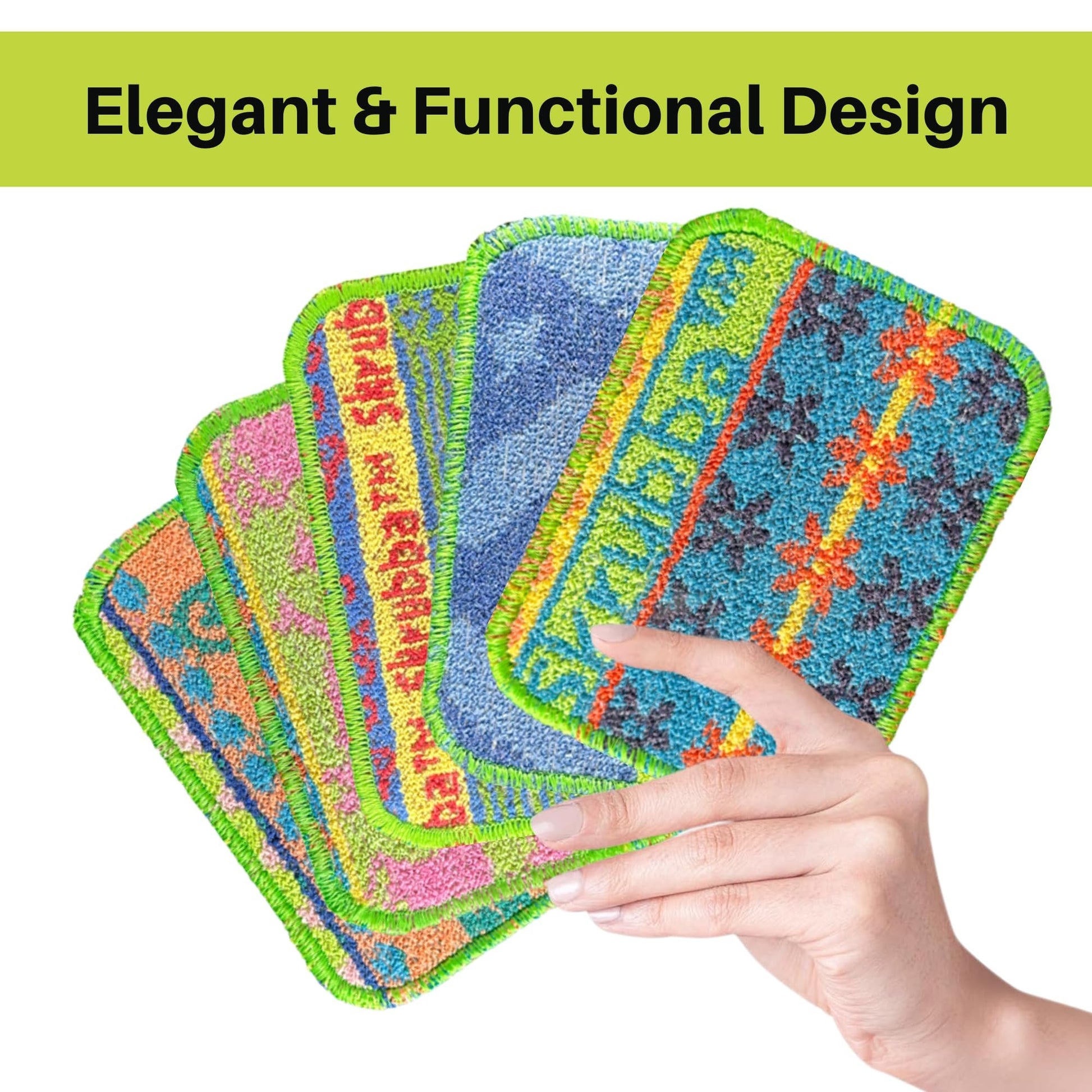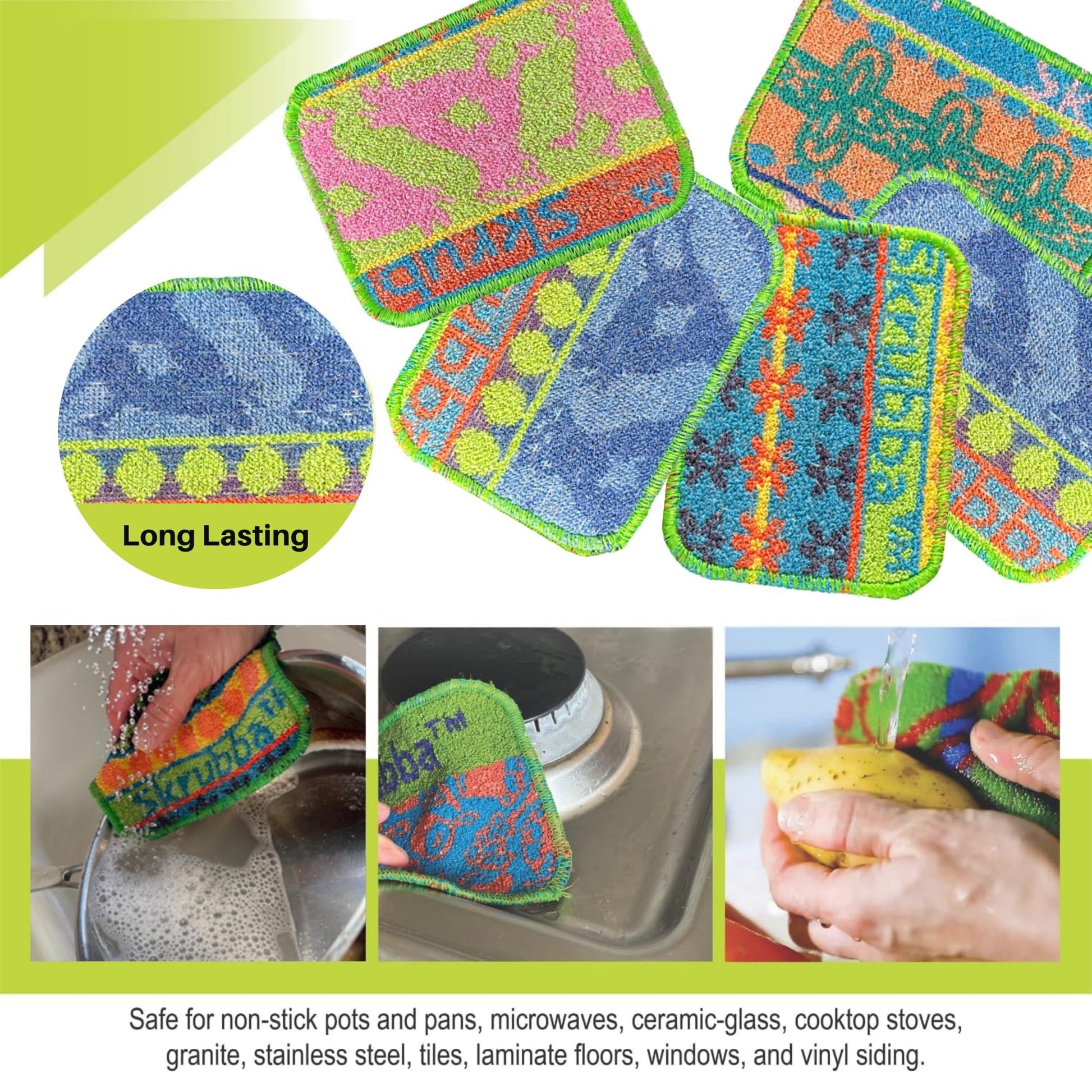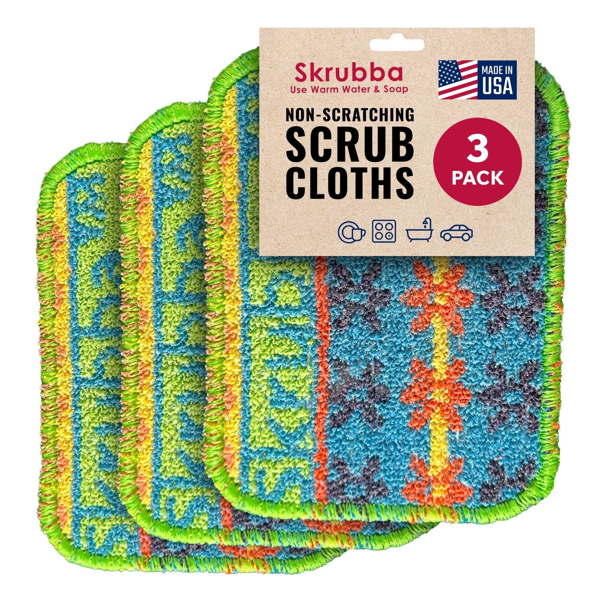 Safe for non-stick pots and pans, microwaves, ceramic-glass, cooktop stoves, granite, stainless steel, tiles, laminate floors, windows, and vinyl siding. Use on your RVs, fiberglass boats, outdoor furniture, pools and liners, and even tar on the exterior of your car surfaces.....without a SCRATCH! Never use toxic chemicals again, just a Skrubba and liquid soap! Important Note: The patterns have a general theme of design but will vary based upon how the product is manufactured. The images provide an idea of the designs incorporated. Manufacturer suggests testing the SKRUBBA on inconspicuous surfaces around the home first to ensure no unintended abrasion; many household surfaces vary in physical and chemical composition.Versatile Use: Perfect for RVs, campers, and everyday cleaning tasks, this scrubby pad is designed to tackle tough messes without scratching surfaces.Safe on Surfaces: Gentle enough for non-stick cookware, glass, stainless steel, and more, making it ideal for various household applications.Durable and Reusable: Crafted to last, this scrubby can be used repeatedly, providing an eco-friendly cleaning solution that reduces waste.Easy Care: Simply wash in the dishwasher or washing machine for hassle-free maintenance and longevity.Functional Design: Lightweight and compact, making it easy to store and carry in your RV or camping gear.