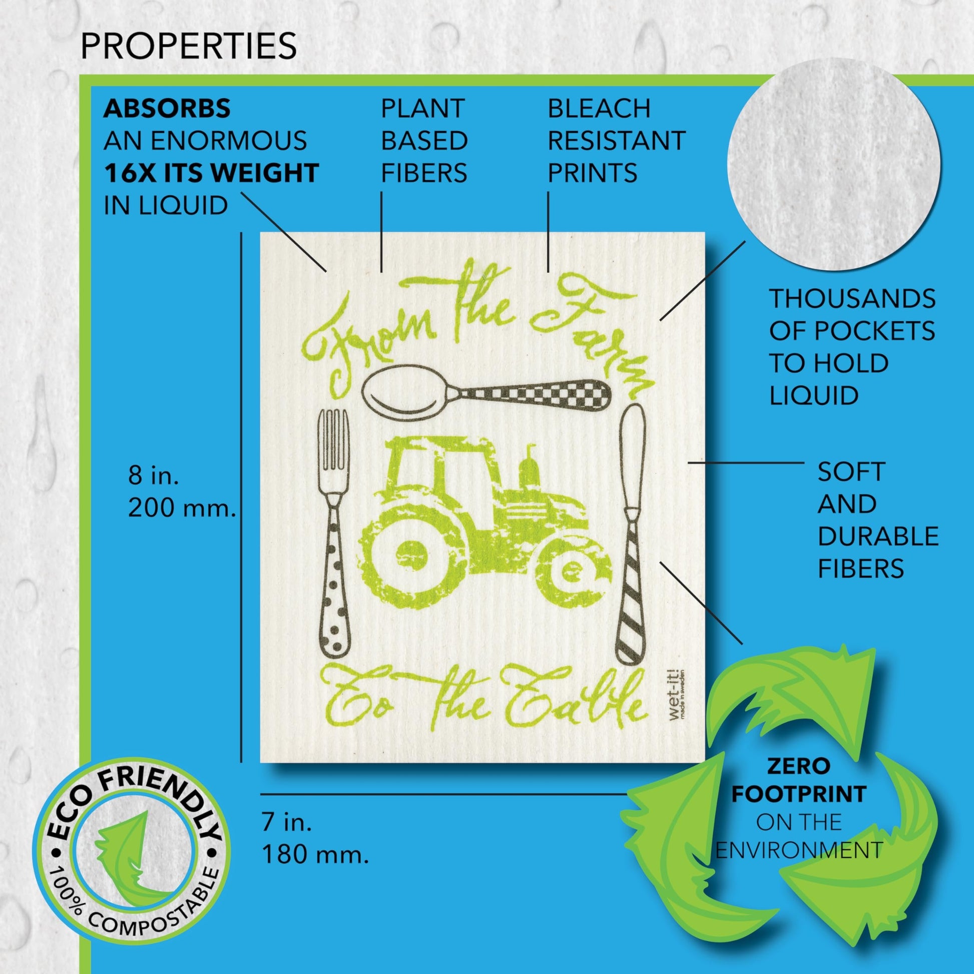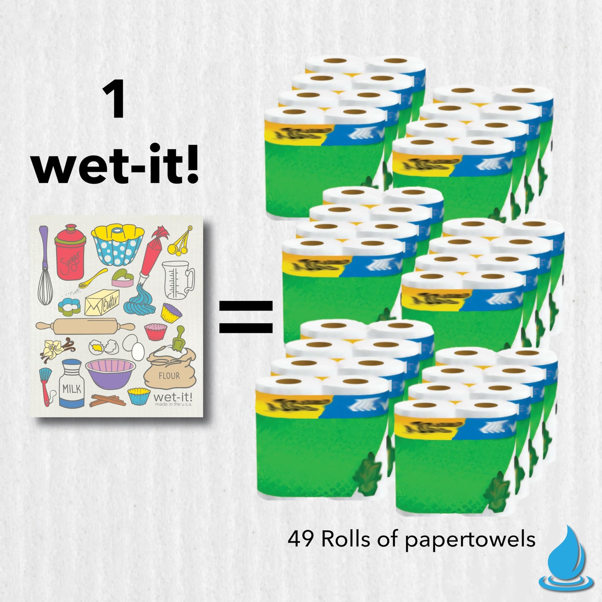 Wet It Delivers: Wet-It Swedish Dishcloths for kitchen dishcloths and home needs, the perfect combination of an absorbent kitchen towels and reusable wipes for cleaning. Wet It's Swedish cloths dishcloths for kitchen washcloths and other places in the home are a fantastic eco friendliness solutions or gifts for a family. Our absorbency will win you over with our propriety design that is made up of 70% cellulose and cotton. Wet It Reusable Swedish Dishcloths are made in Sweden and the US and are authentic swiss dishcloths. Perfect For Anywhere, Anytime Do you have a messy child that needs a cleanup in his room? Wet It will take care of the mess in no time with our best high absorbency design. Need a towel like wash cloths for kitchen messes to wipe down a surface or mess? Use Wet It Swedish Dish Cloths for kitchen messes just like papaya reusable paper towels; washable and no hassle. How about a spill in the living room? You guess it, Wet It Swedish sponges will soak up the mess in a flash. Earth Loving Design for the Eco-Conscious: Leave paper towels in the dust and apply Wet It reusable cleaning cloths. Boom! You are done and you have lent a hand in reducing your waste. Our high absorbency reusable paper towel alternative will out clean paper towels by a large stretch and function just like dishrags. While Wet It can be used as absorbent swedish dish cloths for kitchen washing dishes there are hundreds of surfaces you can use them on all while being compost friendly or disposable washcloths. When you are done, so that you have dish cloths that don't smell, just toss them in the washer and they come out as clean no odor dish cloths!Scandinavian Design Perfection: Wet It perfection is here! Say goodbye to single-use paper towels with these reusable Swedish dish wash cloths for kitchen. Perfect for eco-conscious buyers. Made of 70% cellulose & 30% cotton.Sparkling Clean: Keep your home and kitchen squeaky clean with these durable kitchen washcloths for dishes, surfaces, and more. Great alternative as reusable cloth paper towels or wipes that are washable. High quality swedish dishcloth made in SwedenSwedish Quality Excellence: Experience the superior absorbency and durability of our kitchen cloths for dishes and surfaces. This super absorbent wet it dishcloth can hold up to 16 times its weight. Our Swedish cloths come in a variety of prints.Simple Care: Wet It Reusable Swedish Dishcloths for kitchen and more typically last 6 months or longer. The perfect alternative to sponges, paper towels, and kitchen washcloths. Easy to care for. Simply wash in the dishwasher or washing machine.Tackle Tough Tasks: Fulfills all your kitchen cleaning cloths needs as well as other spots around the home. Wet It kitchen wash cloths are designed to take on large messes. Works great in the kitchen, nursery and more as they are reusable.