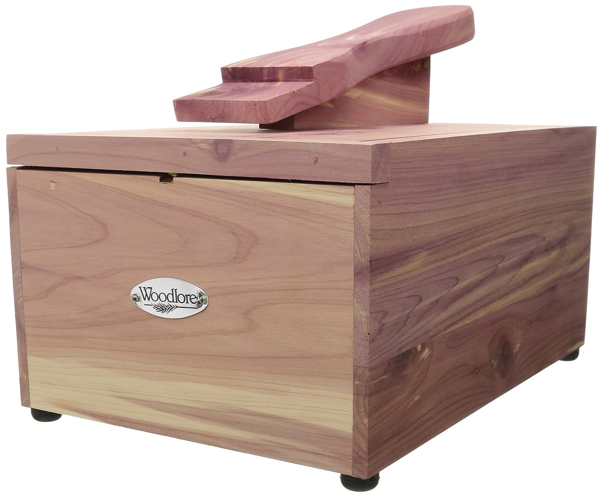 Woodlore Professional-Style Cedar Shoe ValetMade of cedar,No assembly required.Sliding top with bullet catch and built-in shoe supportLight sanding rejuvenates the aromatic cedar smellThe footrest is used not only for foot placement but it is also used as a handle to slide lid open the box.Overall dimensions: 11L x 8W x 6H inches