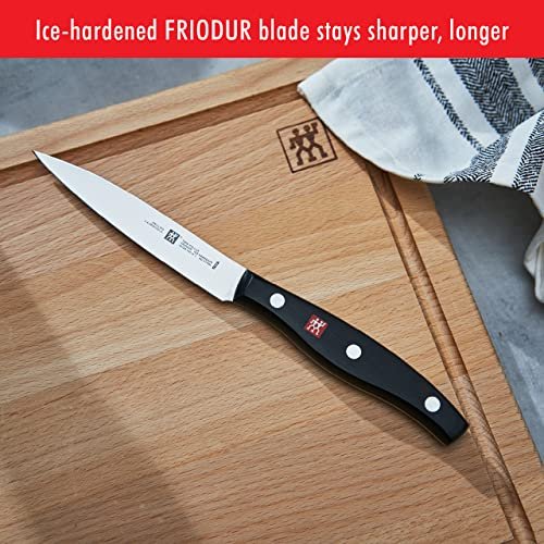 ZWILLING Twin Signature 11-Piece German Knife Set with Block, Razor-Sharp, Made in Company-Owned German Factory with Special Formula Steel perfected for almost 300 Years, Dishwasher SafeULTRA RAZOR-SHARP: ZWILLING knives start out razor-sharp and stay sharper longer, even with minimal care. 57 Rockwell Hardness = excellent edge retention. Edge angle 15 degrees per side.THE LAST KNIFE YOU’LL EVER NEED TO BUY: Zwilling knives are built to last. They are German engineered informed by almost 300 Years of masterful knife making.WE KNOW MORE ABOUT KNIVES THAN ANYONE ELSE IN THE WORLD: ZWILLING has been making knives since 1731 in the renowned “City of Blades” Solingen, Germany and we are constantly innovating to bring you the best knives possible.LARGEST MANUFACTURER OF KNIVES GLOBALLY: As the largest manufacturer of knives globally, we own our factories so we can control the quality at every step of production.SUPERIOR CRAFTMANSHIP: Special formulated German stainless steel perfected for almost 300 years. Ice-hardened FRIODUR blade starts sharper, stays sharper longer, and has superior resilience. Made in Company Owned German Factory.EXCEPTIONALLY BALANCED KNIFE FOR COMFORTABLE CUTTING: Zwilling knives are ergonomically shaped for maximum comfort in the hand, making meal prep a breeze.STRONG & STURDY: Ergonomic polymer handle is perfectly bonded to full tang. With a full tang blade the steel runs from the tip of the knife all the way into the handle giving it the best balance and force when using a knife.